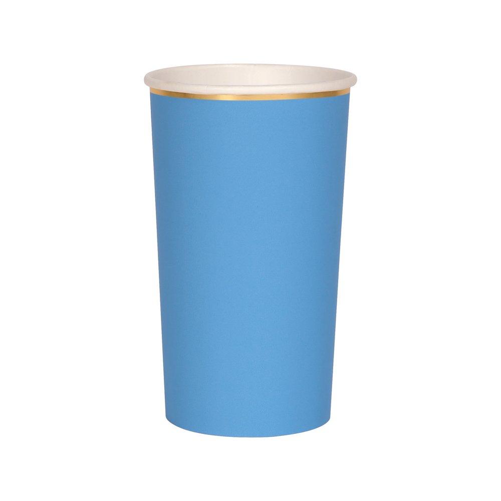 These bright blue highball cups, with a stylish shiny gold border, are a bright and beautiful way to serve refreshing drinks. Made from high-quality card with a superb gloss finish, suitable for hot or cold drinks.