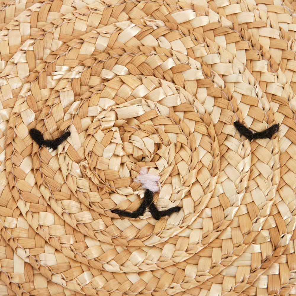 This delightful woven straw cat cross body bag is perfect for a stylish young person. Featuring an adorable embroidered cat face, perky ears, and brilliant bright pompoms. Fully lined, with a sturdy leather strap and zip closure.