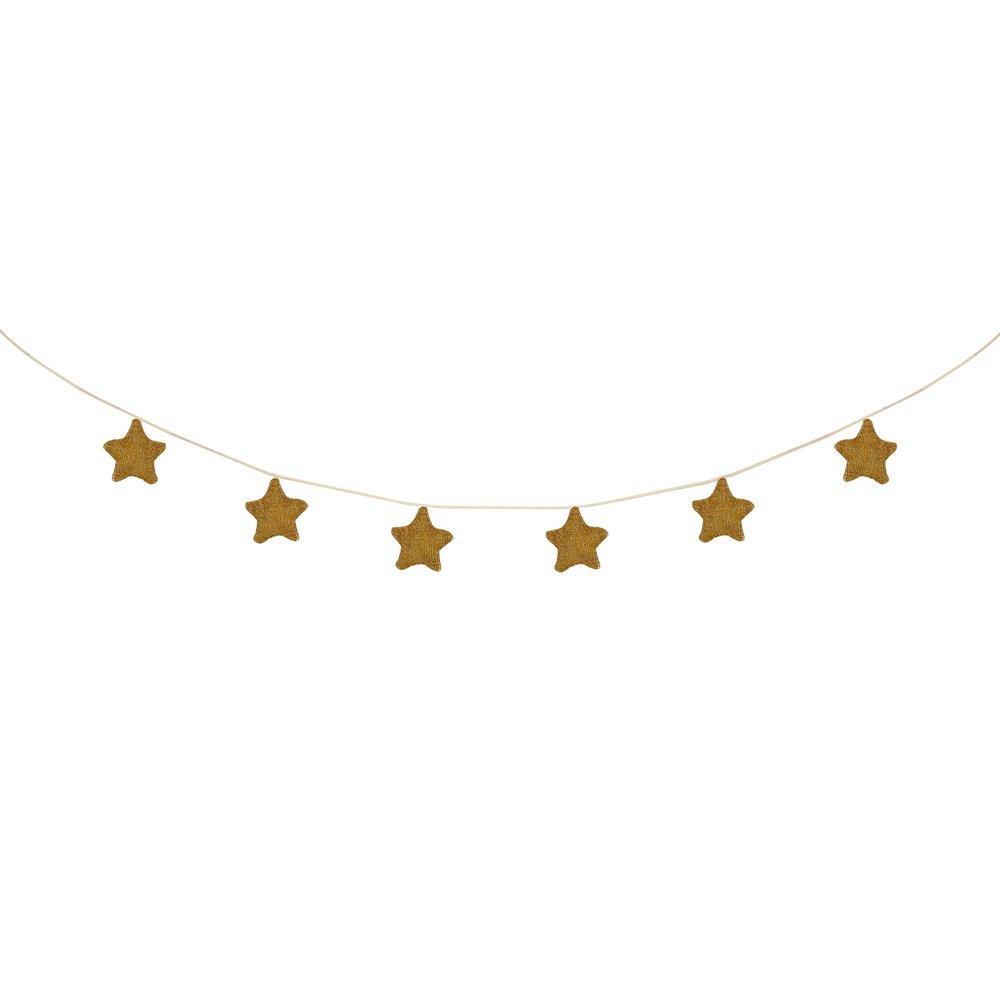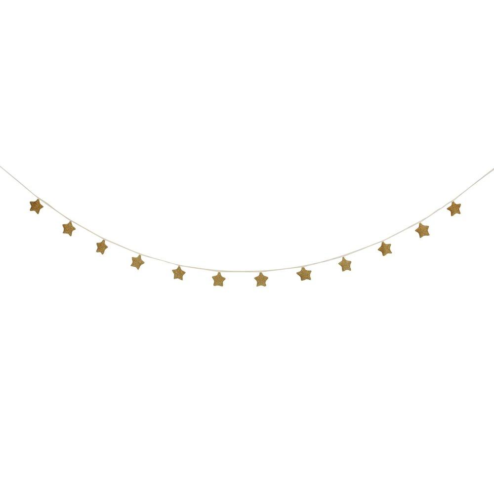 Bring the beauty of the night sky into your room with this gorgeous garland. Strung on elegant ivory cord, these cotton stars are made with a gold fleck for a shimmering effect. Comes with a handy drawstring bag for storage.