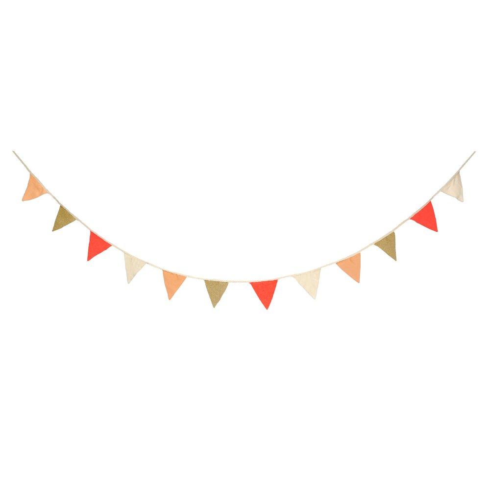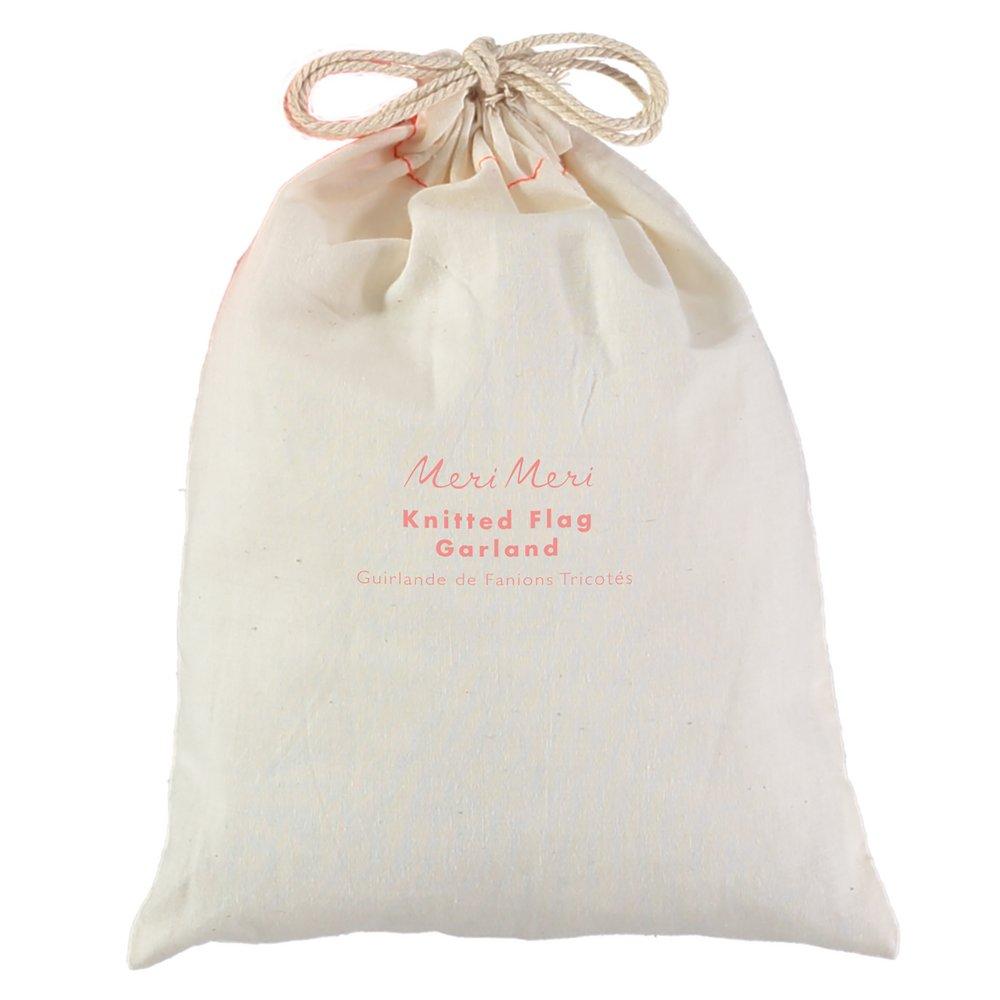 Beautifully decorate a wall, bookcase or bedpost with this gorgeous garland. Strung on sturdy cord, the knitted organic cotton flag pennants are in bright coral and natural shades. Comes with a handy drawstring bag for storage.