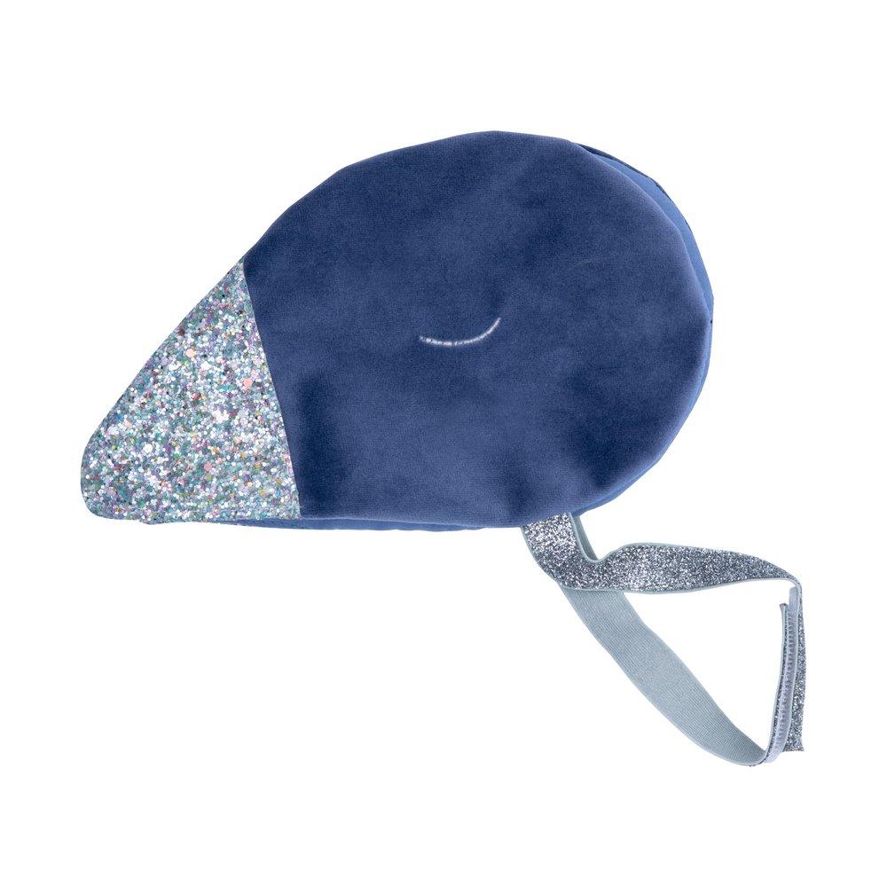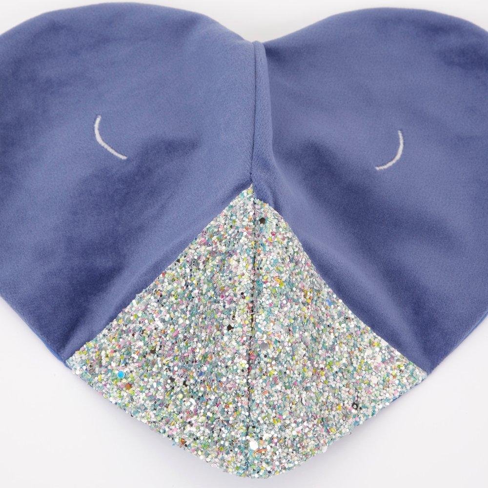 - The blue velvet headdress has sweet stitched features and a gorgeous glitter fabric detail on the beak