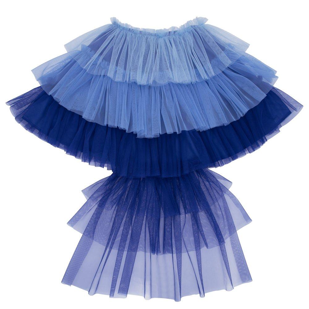 - The winged cape, with a delightful tail detail, is crafted from blue lined layered tulle