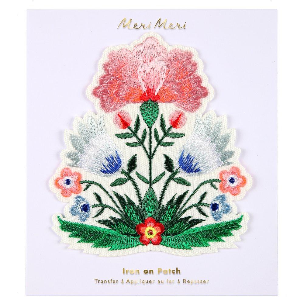 Made from natural canvas and decorated with a beautiful floral pattern embroidered in neon and gold thread, this iron-on patch will add a little joy to any piece of clothing!