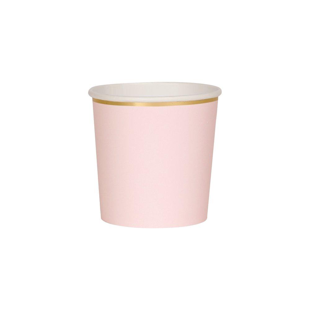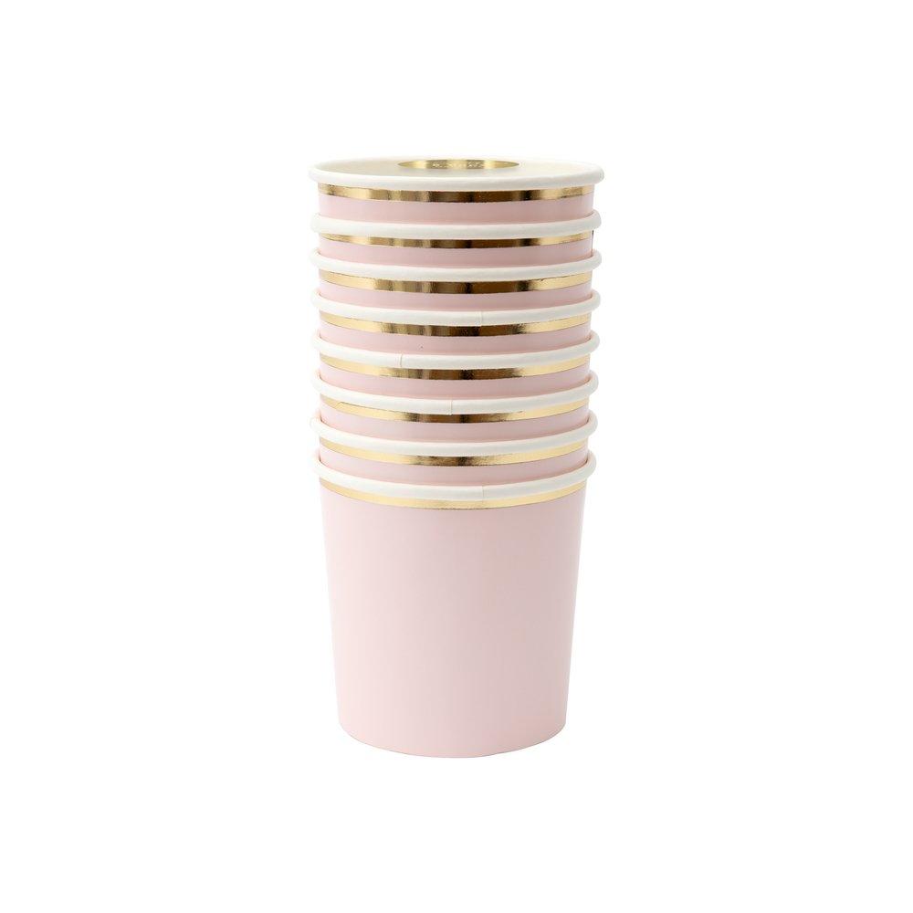 Party guests of all ages will love to sip from these pretty dusky-pink tumbler cups with a stylish shiny gold border. Made from high-quality card with a superb gloss finish, suitable for hot or cold drinks.