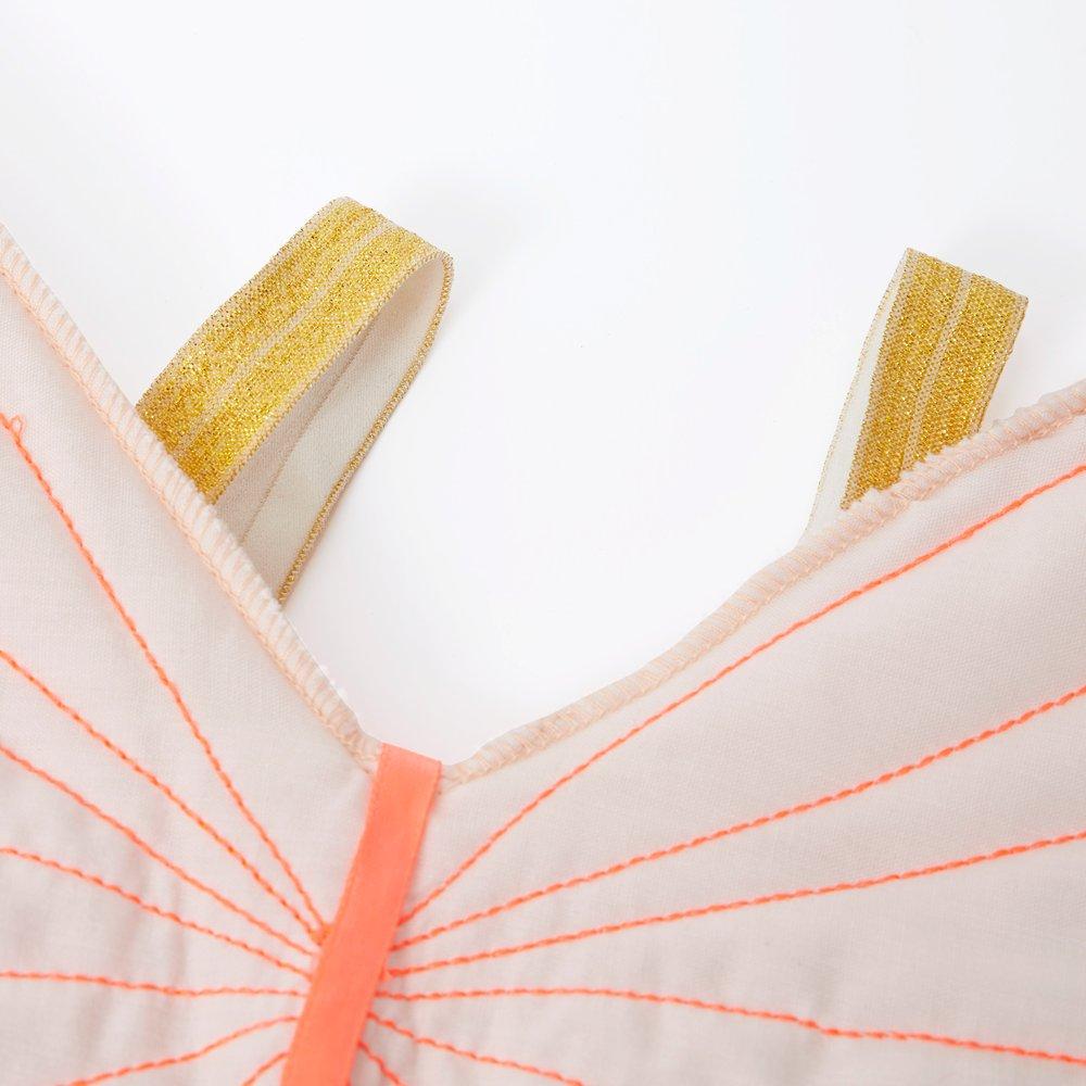 - The wings are crafted from peach cotton with gold elastic arm straps