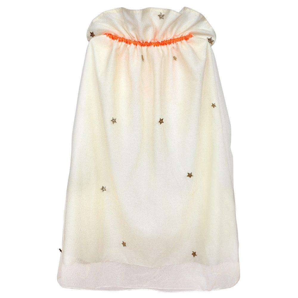 - Gold stars lined net cape with hook & loop fastener