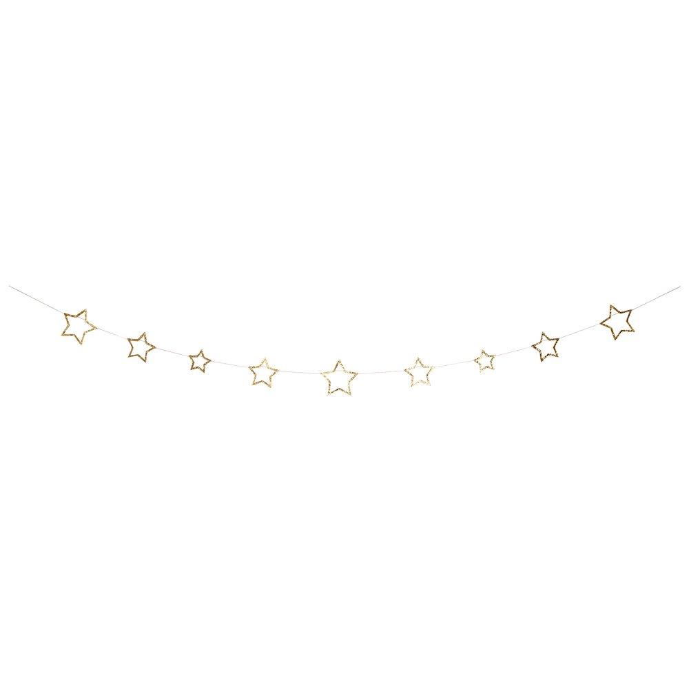 This beautiful and sparklygold garland features an array of star pennants perfect for Christmas. The pennants are in three sizes all embellished with chunky gold glitter.