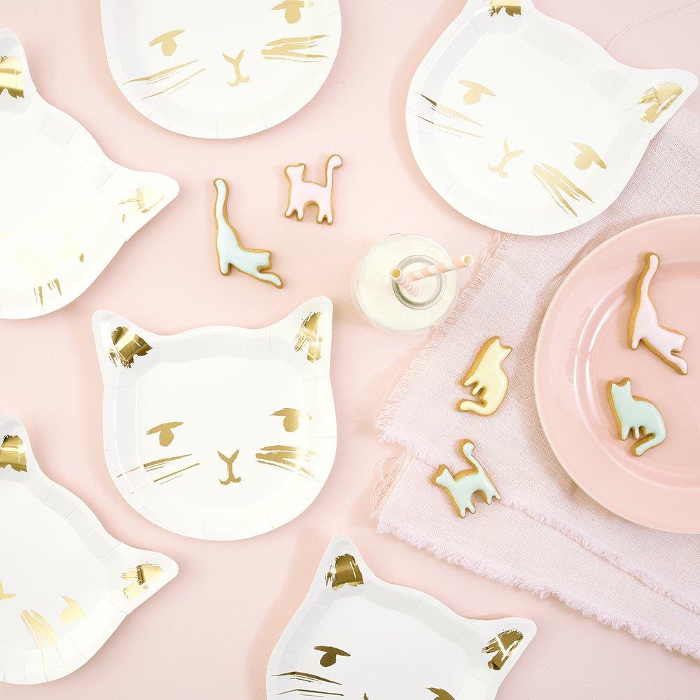 These charming cat plates feature an adorable illustrated face, complete with delicate whiskers picked out in shimmering gold foil. They'll look purrfect on the party table!