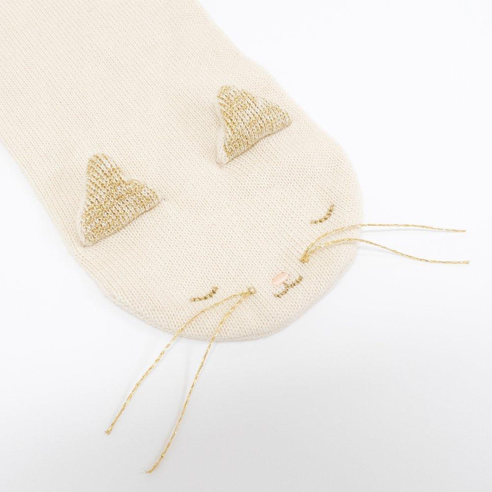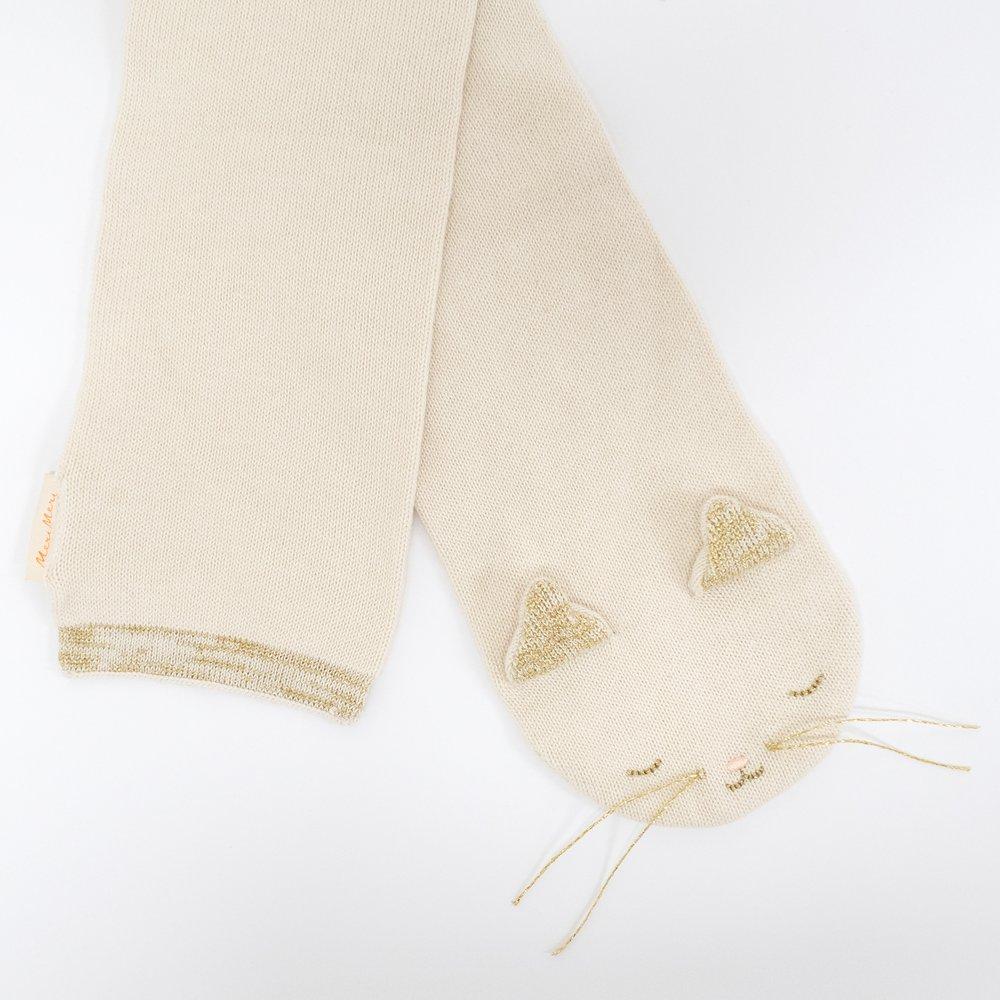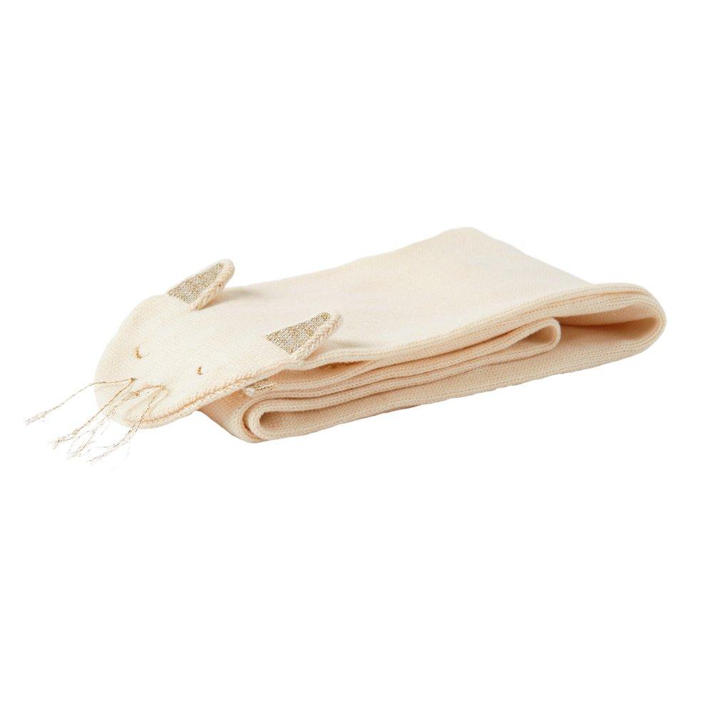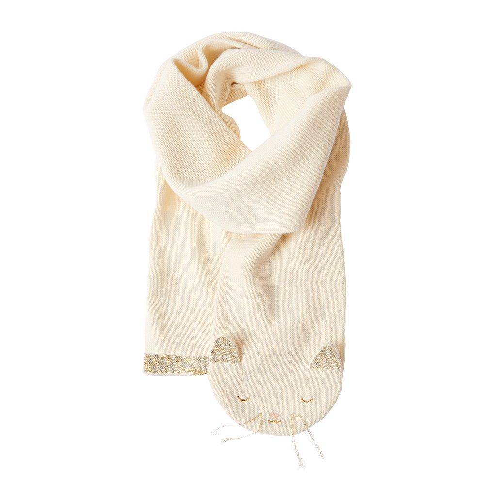 Meow, make wrapping up warm on chilly days extra fun with this adorable kitten scarf. Made from soft organic cotton with sweet ears, golden whiskers, and stitched features.