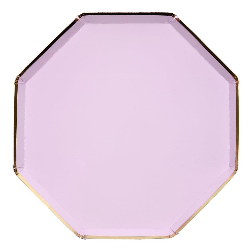 These large dinner plates are such a lovely shade of lilac they are almost too pretty to use! Made from high-quality card with a shiny gold foil border and a superb gloss finish.