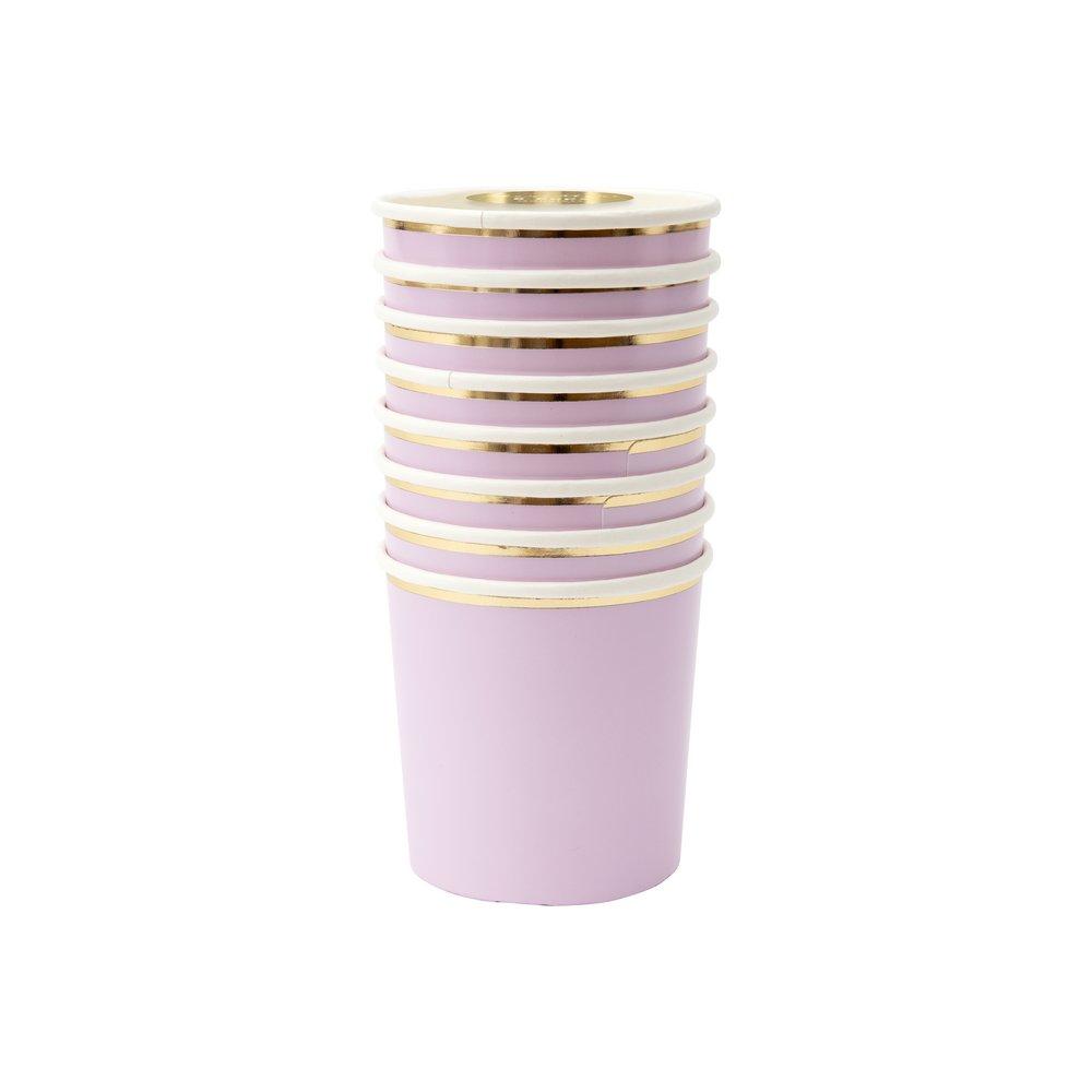 Guests will love their drinks served in these pretty lilac tumbler cups. Made from high-quality card with a shiny gold foil border and superb gloss finish, suitable for hot or cold drinks.