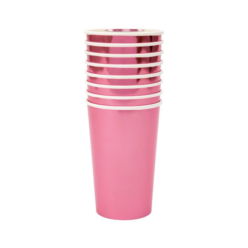 These striking metallic-pink highball cups are perfect to serve long cool or hot drinks to your stylish party guests. Made from high-quality card with a superb gloss finish.