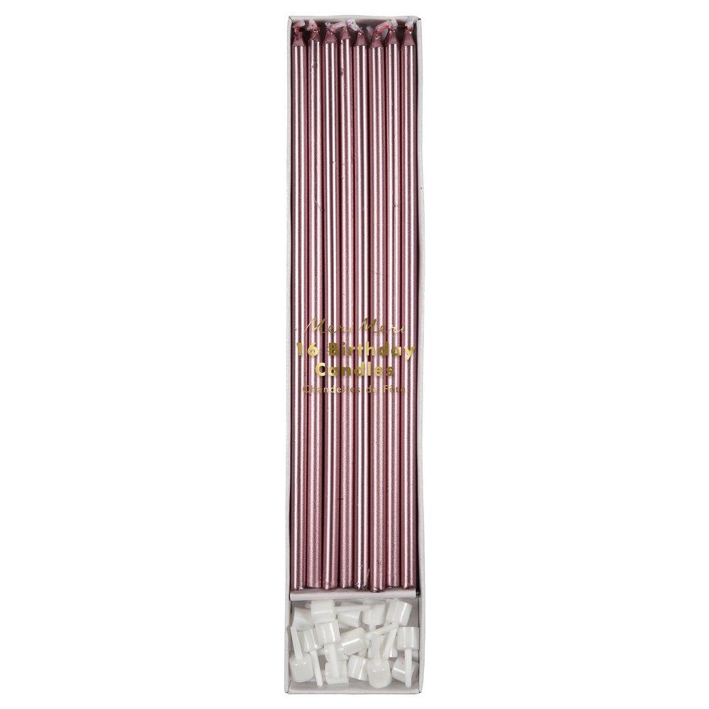 Unwrapping presents, cake, blowing out candles... Some things never lose their appeal, no matter how many birthdays pass you by, so why not add a little extra touch of luxury to your party with this set of sixteen elegant metallic pink candles.