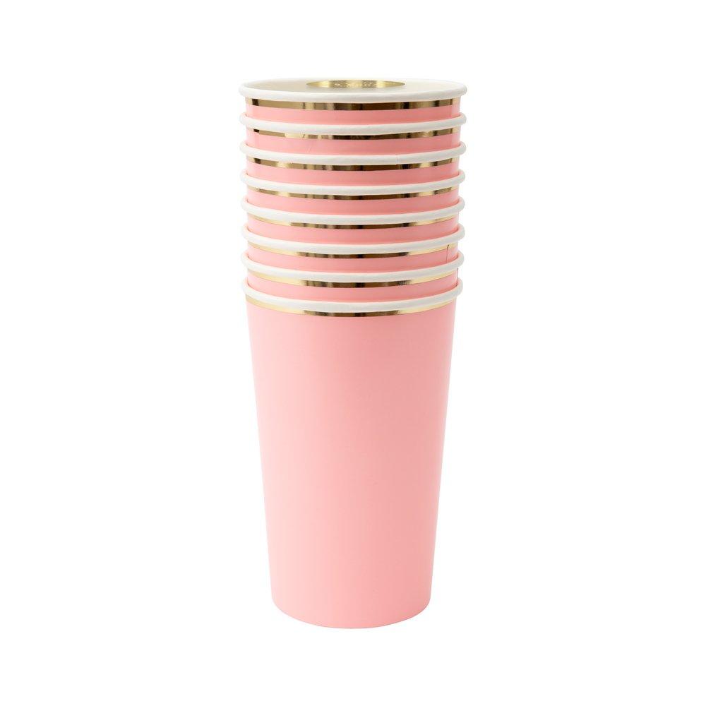 Serve drinks in style with these neon coral highball cups with an elegant gold foil border. Made from high-quality paper with a superb gloss finish, suitable for hot or cold drinks.