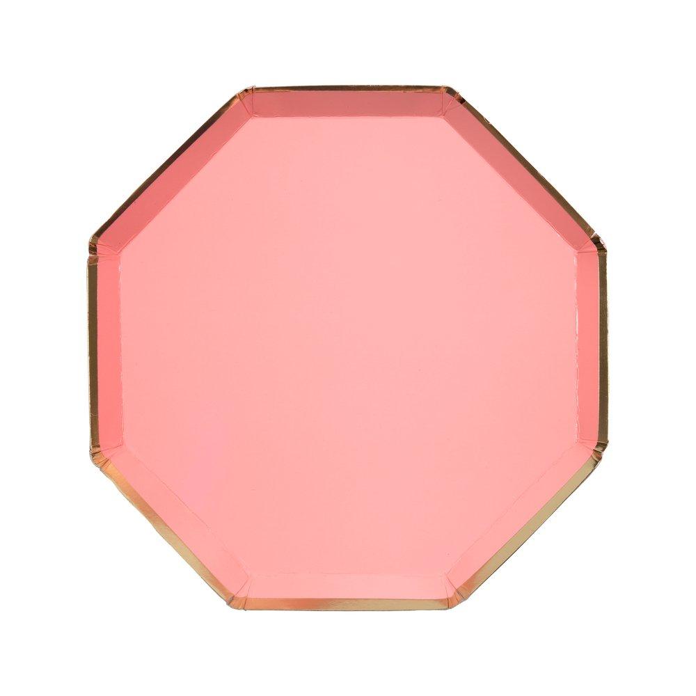 If you're looking for an elegant way to serve nibbles or cake, then you'll love these neon coral side plates. Beautifully embellished with a shiny gold foil border. Made from high-quality paper with a superb gloss finish.
