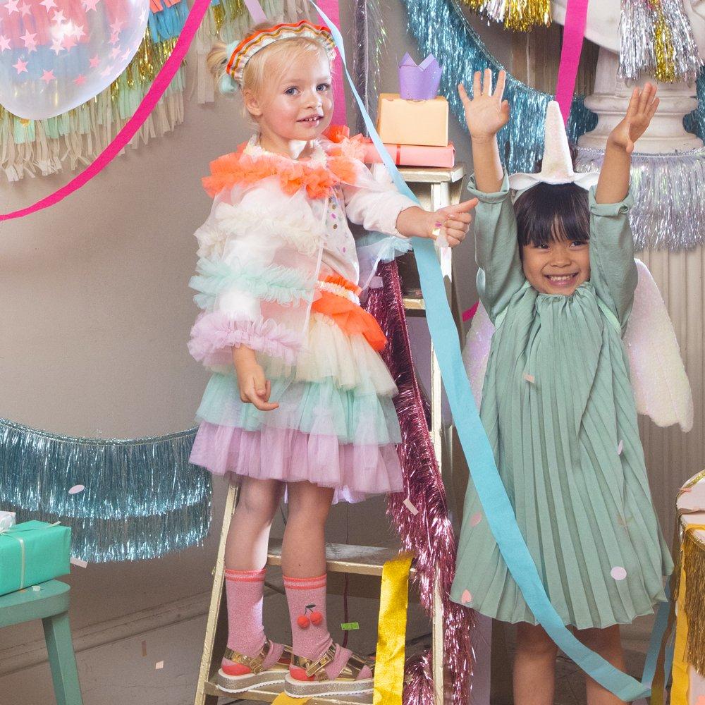 • Layered mauve, mint, lemon & coral tulle