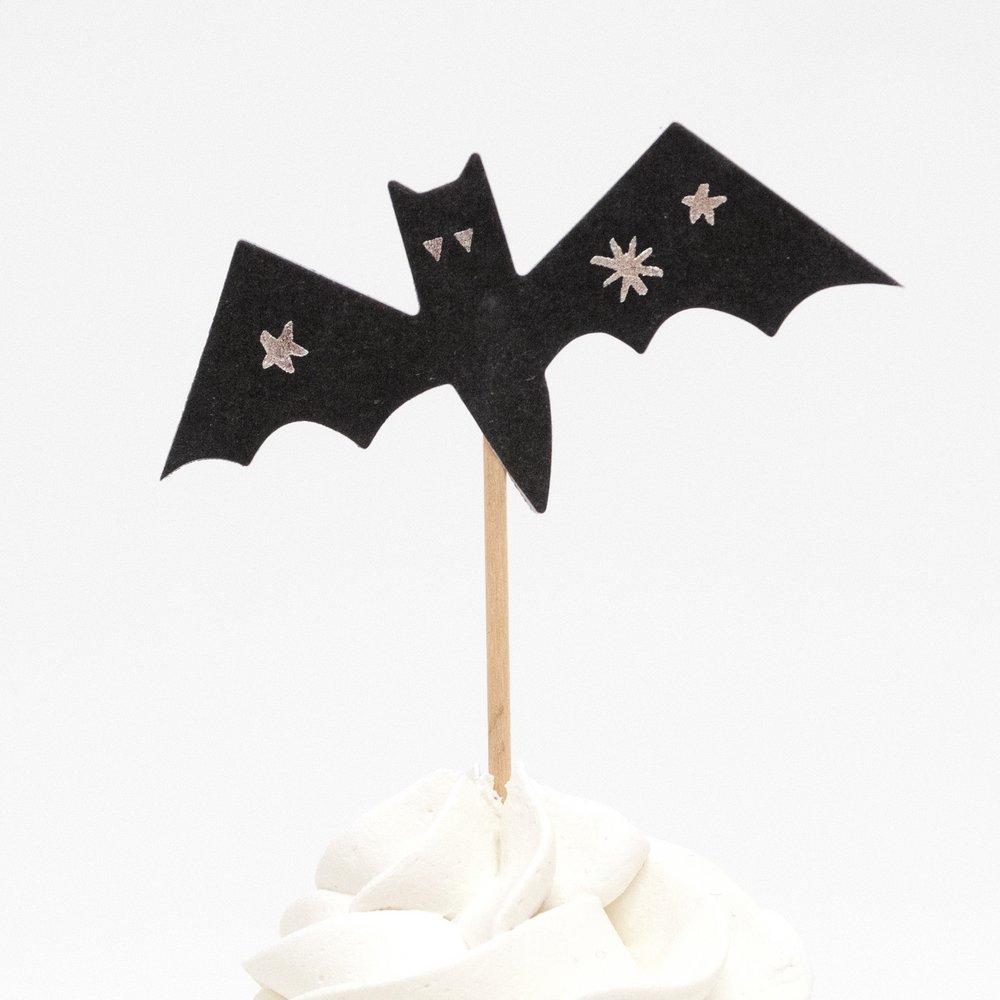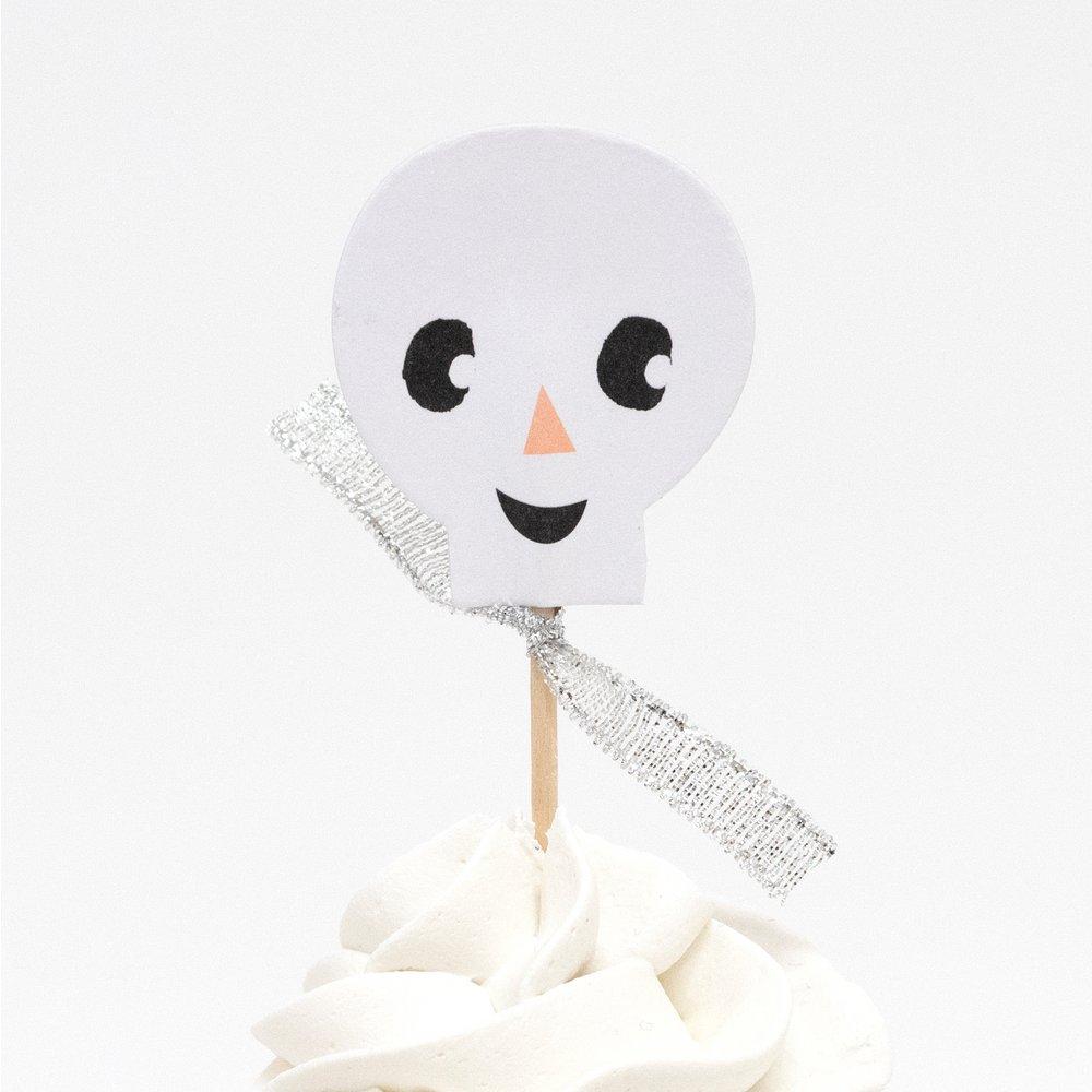 - The kit includes 6 designs of toppers (with four of each) - skulls, bats, stars, pumpkins, ghosts and a crescent moon