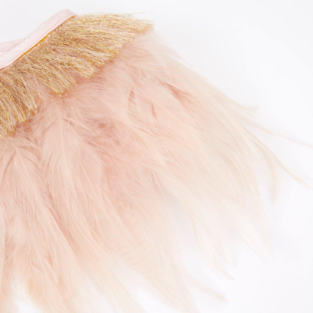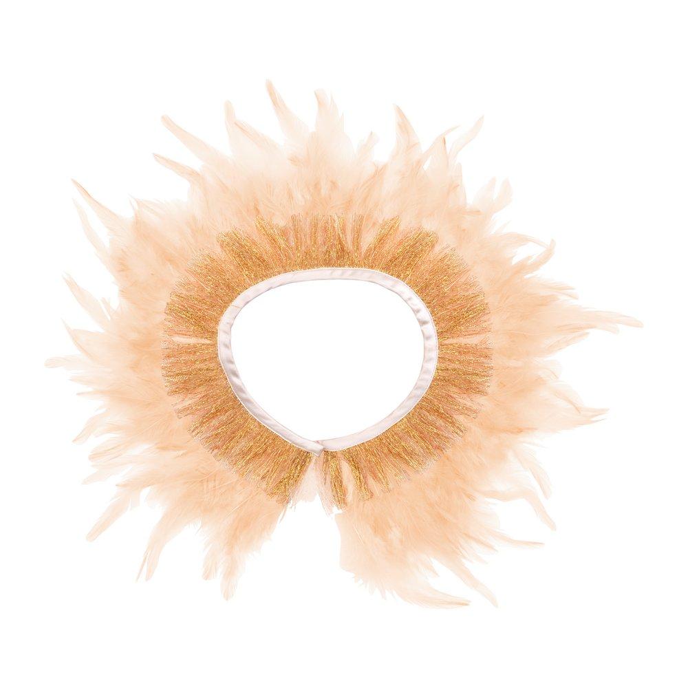 This very pretty feather collar is perfect for dress-up time or when you simply want an outfit to look extra smart! Beautifully designed and crafted from satin lined peach feathers and gorgeous gold thread detail.