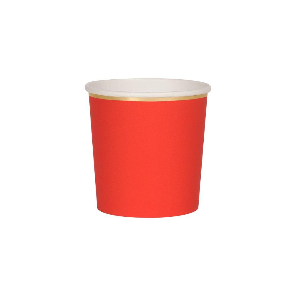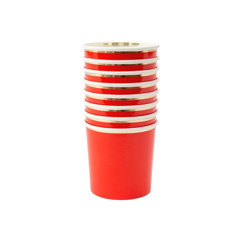 These bright red tumbler cups, with an elegant gold foil border, are a colourful way to serve delicious drinks. Made from high-quality card with a superb gloss finish, suitable for hot or cold drinks.