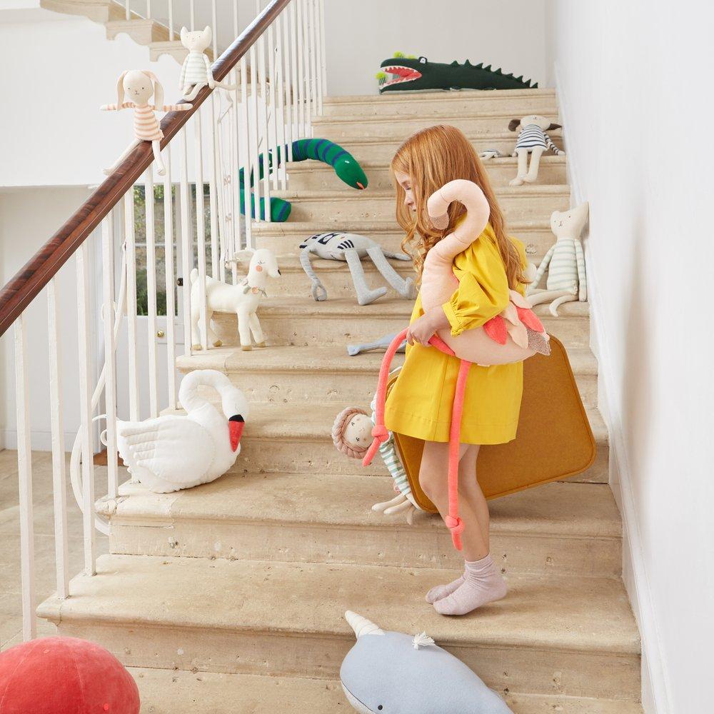 Ringo the flamingo will charm little ones with his adorable stitched features, dangling legs, and fantastic feathers. He's made of knitted organic cotton and is the perfect companion for any child who loves the wild.