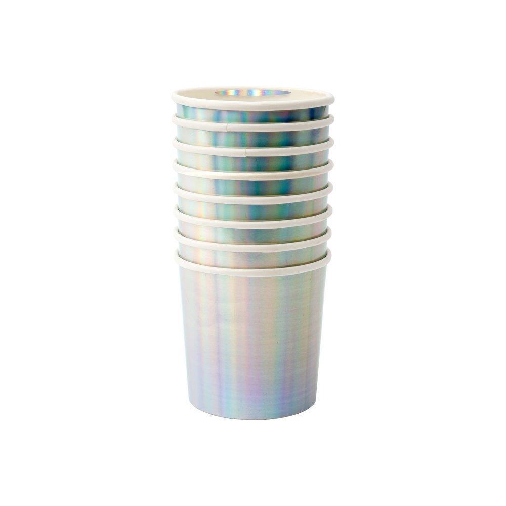 Serve drinks in style with these eye-catching sparkly silver holographic tumbler cups. Made from high-quality card with a superb gloss finish, suitable for hot or cold drinks.