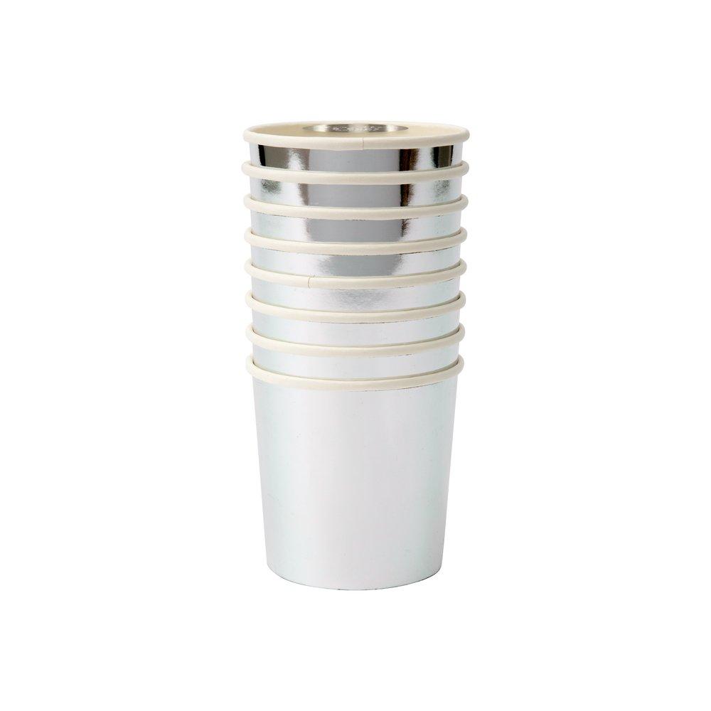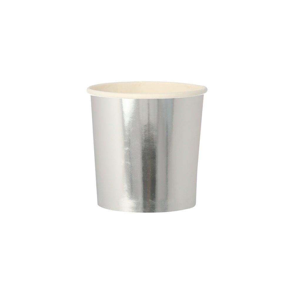 Your guests will love to be served refreshing drinks in these stylish shiny silver tumbler cups. Made from high-quality card with a superb gloss finish, suitable for hot or cold drinks.